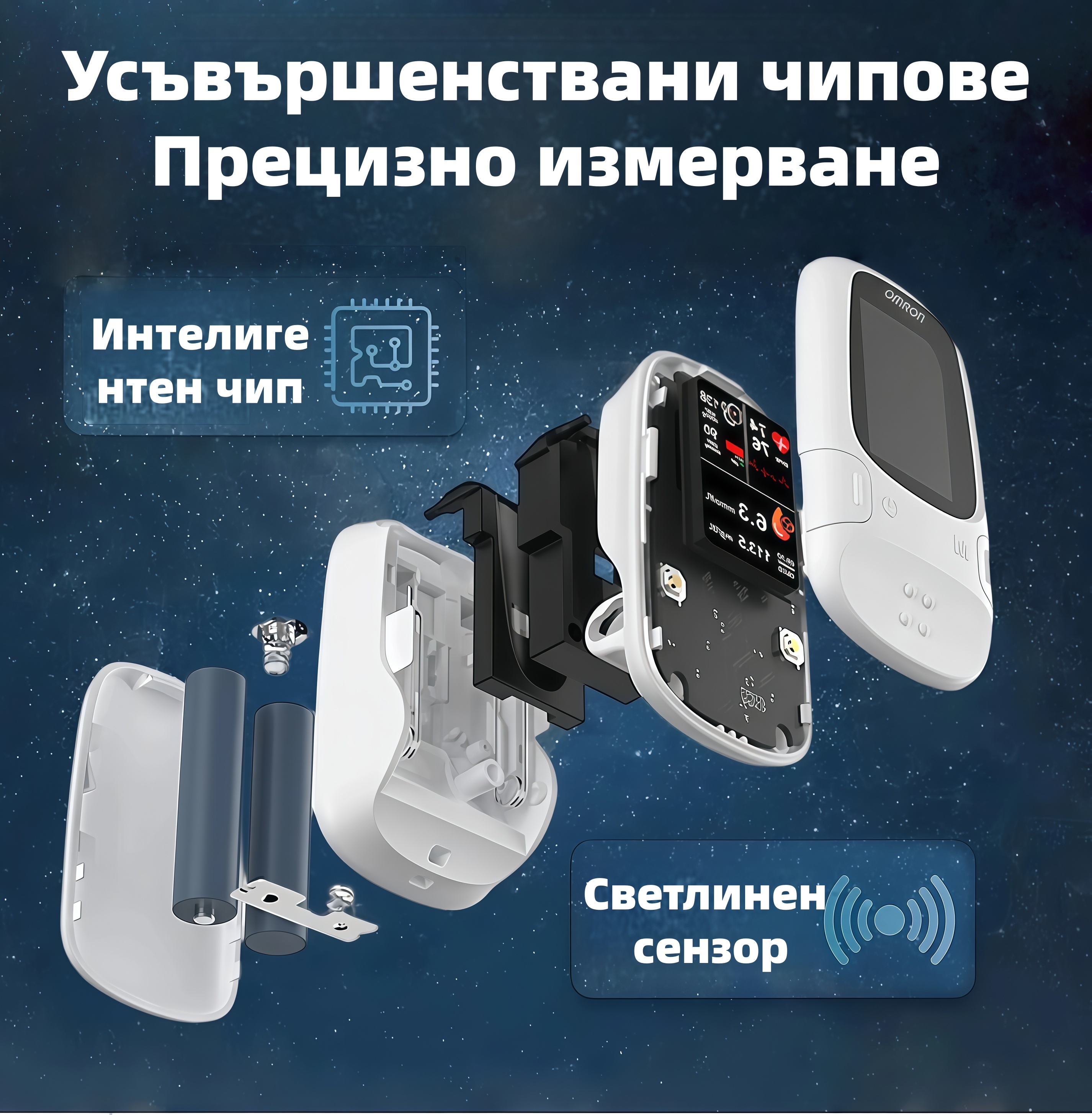 Със своята усъвършенствана технология, базирана на изкуствен интелект, и мощен чип, OMRON™ е три пъти по-точен от традиционните глюкомери, предоставяйки надеждни и прецизни резултати.