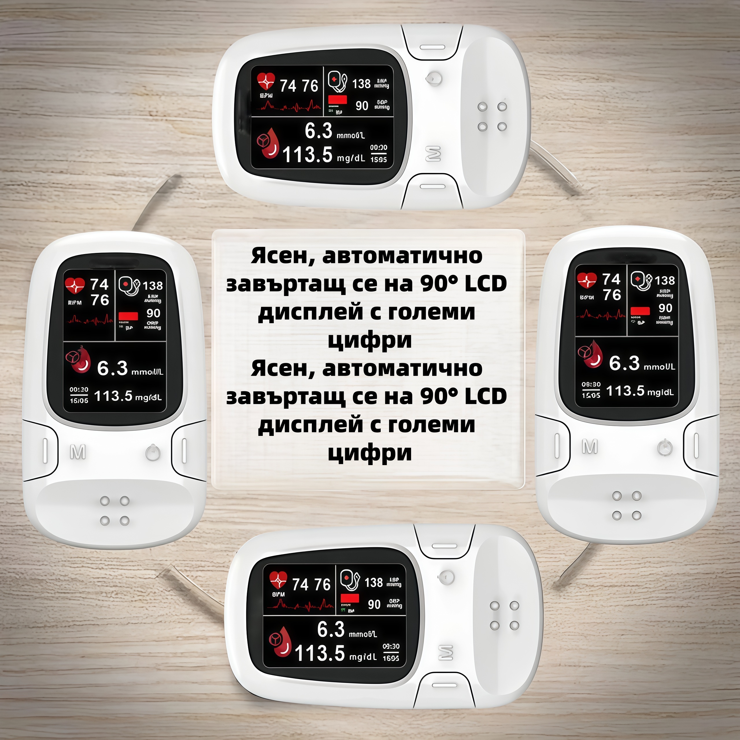 Безболезненият измервател на кръвна захар използва усъвършенствана инфрачервена / спектрална сензорна / 𝓒𝓖𝓜 технология, за да осигури наистина неинвазивно и безболезнено измерване.